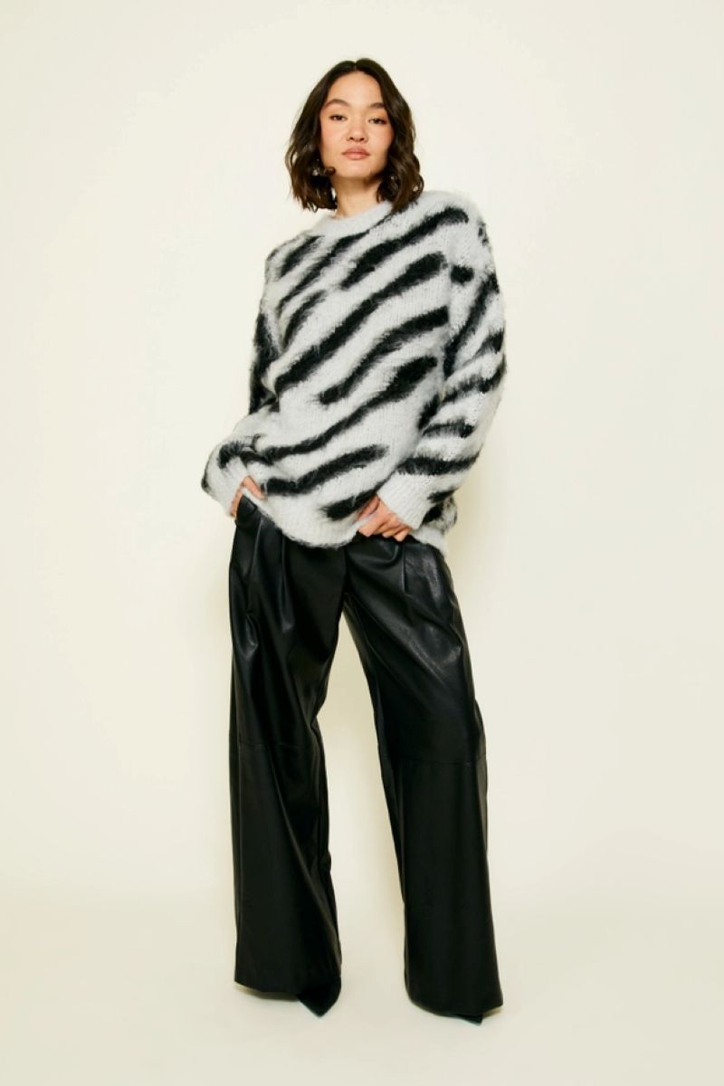 This beautiful abstract fuzzy print sweater is the perfect pick for the fall/winter season. Not only is it comfortable, but versatile and can be styled up or down, depending on your mood. It’s slightly oversized fit makes it the perfect piece to layer over your clothes to keep you warm.